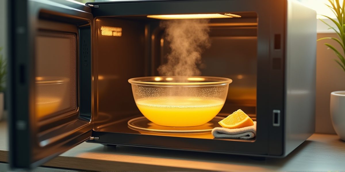 Для более тщательной очистки рекомендуем использовать паровую обработку. Это один из самых безопасных и экологичных способов. Возьмите стакан или любую подходящую посуду, наполните его водой и добавьте 2–3 ст. л. уксуса или лимонной кислоты. Поместите емкость в камеру и включите микроволновку на 5–10 минут. В результате образуется обильный пар, который размягчит остатки жира и грязи.