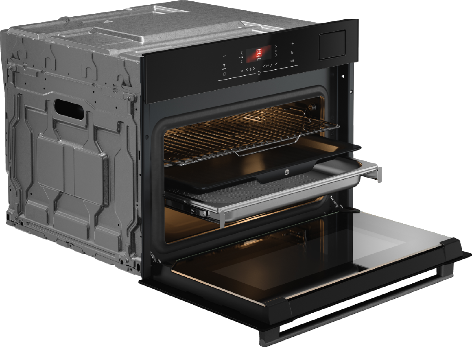Модель ASKO OCS24BGH — это гармоничное сочетание лаконичного дизайна и передовой инженерной мысли. Её фасад из чёрного стекла органично вписывается в современные кухонные интерьеры, а минималистичные сенсорные элементы управления подчёркивают премиальный статус серии Essence. Прибор рассчитан на встраивание в стандартную нишу размером 45–45,5 × 56 × 55 см. Его внешние габариты — 45,8 см в высоту, 59,4 см в ширину и 56,4 см в глубину — при этом внутренний объём составляет 51 литр, что достаточно для повседневной готовки и кулинарных экспериментов.