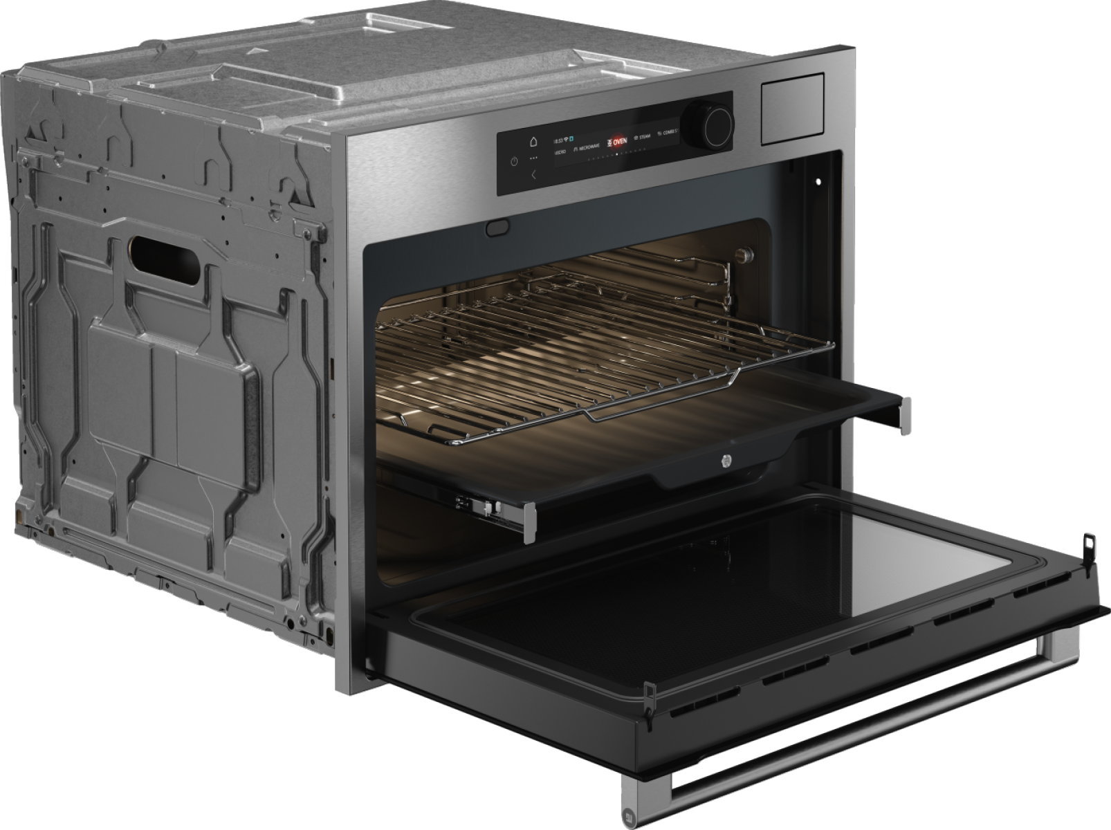 Духовой шкаф оснащен множеством полезных функций: размораживание, сушка, консервирование, стерилизация, уменьшение влажности и поддержание температуры приготовленных блюд.Это позволяет использовать его не только для приготовления пищи, но и для решения других задач на кухне. Телескопические направляющие на одном уровне обеспечивают удобство в эксплуатации, а двухстороннее освещение гарантирует отличную видимость внутреннего пространства.