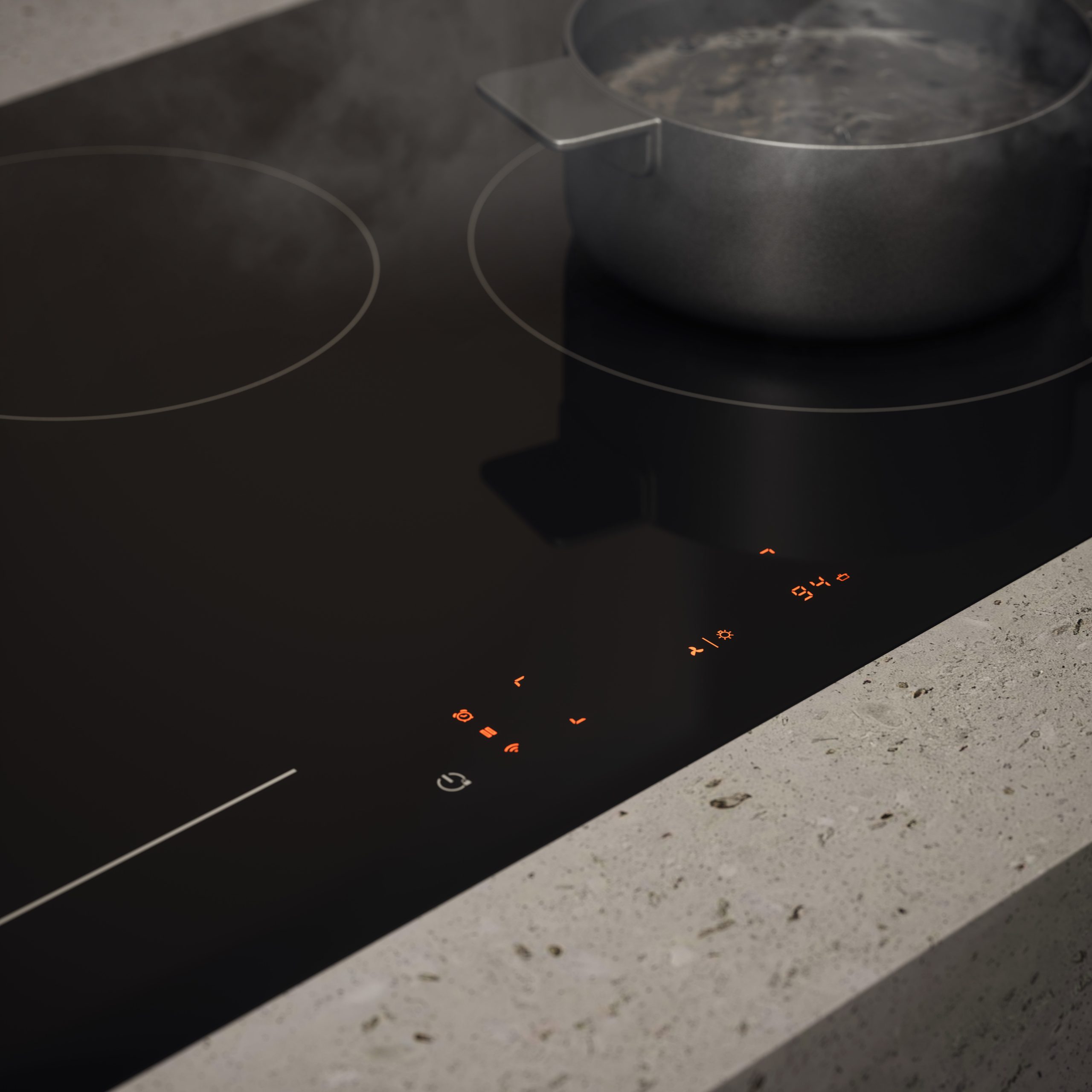 Кроме того, панель имеет множество удобных функций, таких как функция распознавания посуды, функция Stop&Go, зоны Bridge и таймер. Индикация остаточного тепла и блокировка от детей обеспечивают безопасность использования. Варочная панель также оснащена различными режимами приготовления, включая жарку, гриль, кипячение, разогрев и поддержание температуры, а также медленное приготовление и су-вид.