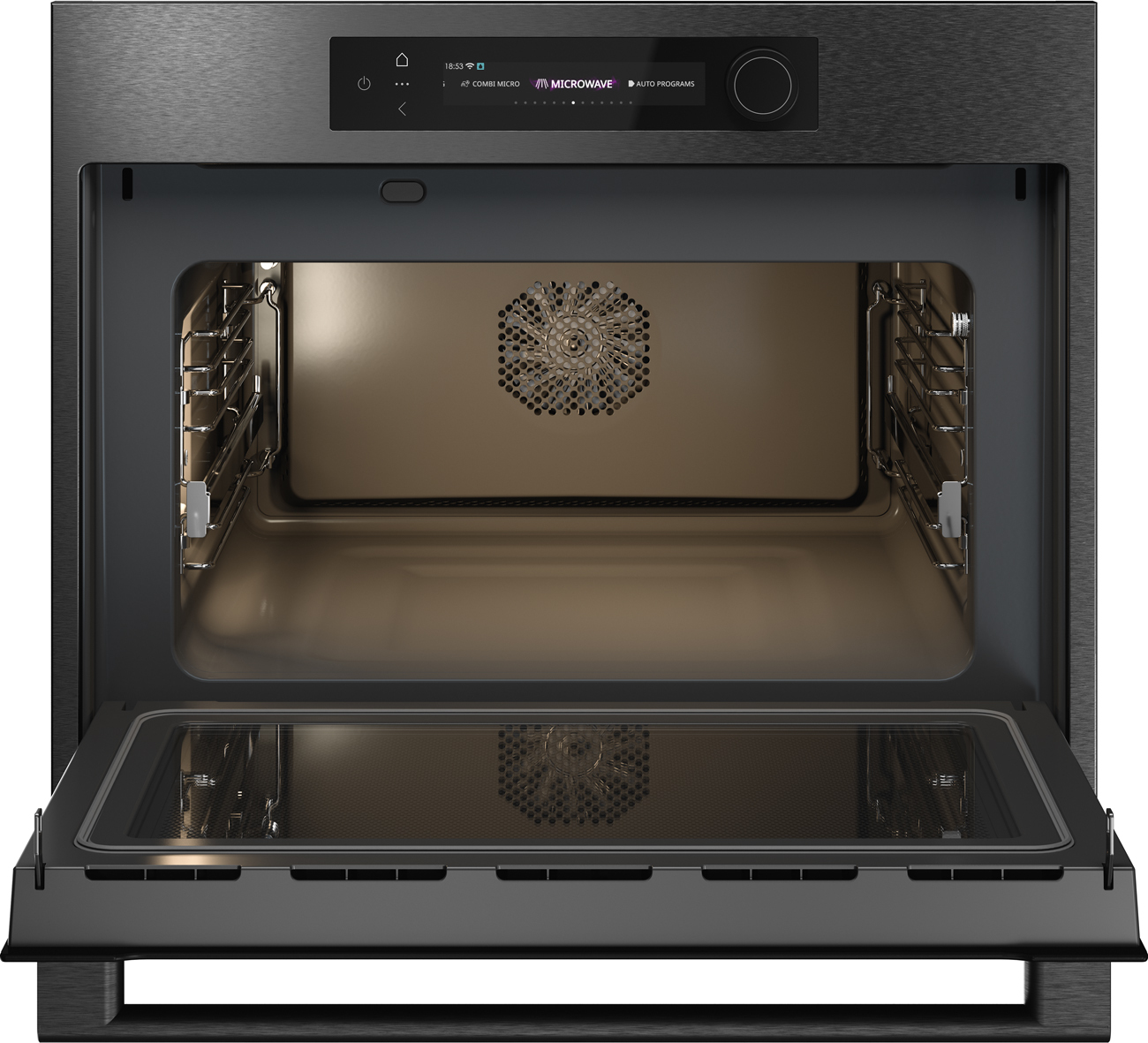 Встраиваемая микроволновая печь ASKO OM64BSH представляет собой гармоничное сочетание минимализма и технической продуманности: строгий корпус в цвете чёрная сталь органично вписывается в современные интерьеры, а утончённая лицевая панель с цветным TFT-дисплеем и поворотным регулятором создаёт ощущение премиальности в помещении. Тонкая рамка дверцы, трёхслойное остекление и функция холодного фронта Microwave CoolDoor гарантируют эффективную термоизоляцию при комфортном внешнем виде, при этом поверхность защищена от отпечатков и легко поддерживается в чистоте. Верхнее и боковое светодиодное освещение с регулируемой цветовой температурой позволяет визуально выделить посуду и блюдо, подчеркивая текстуры и оттенки при сервировке.