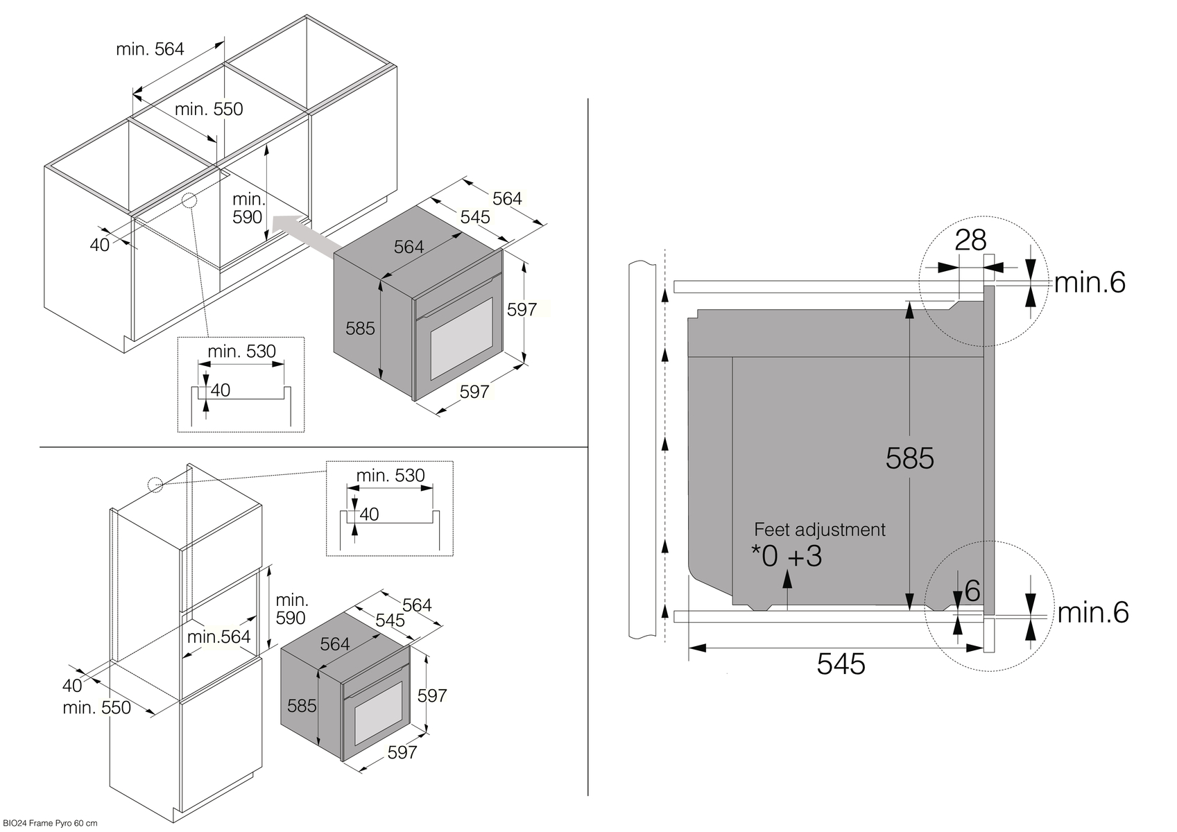 | Мин. ширина ниши | |