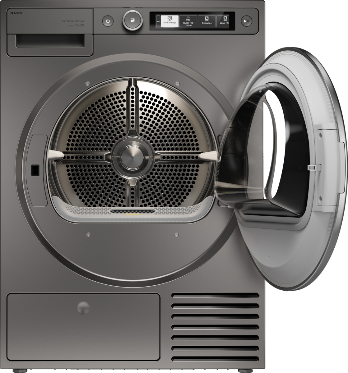 В основе работы — инверторный мотор, который обеспечивает тихую (всего 61 дБ) и плавную работу на протяжении многих лет. Барабан объёмом 117 литров выполнен из нержавеющей стали и оснащён технологией Soft Drum™: его поверхность снижает трение и защищает ткани от износа. Лопасти Butterfly™ равномерно распределяют бельё во время сушки, минимизируя сминание. Встроенная подсветка облегчает загрузку и контроль даже в условиях слабого освещения.