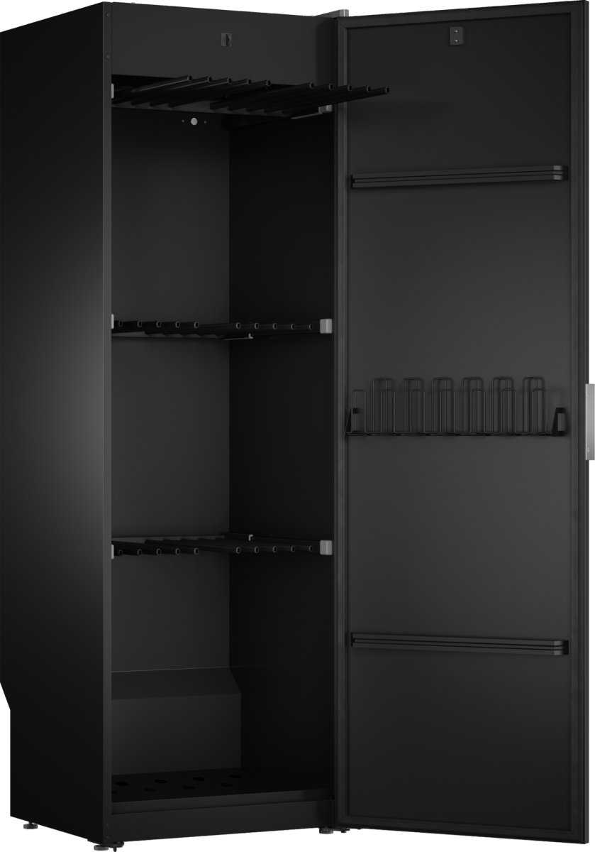 Дизайн акцентирует внимание на минимализме и функциональности: графитовое покрытие придаёт корпусу сдержанный, современный вид, а металлический блок управления контрастно подчёркивает общую эстетику и служит ударопрочной защитой от истирания. Внутренние элементы продуманы для аккуратного размещения различных предметов гардероба: полка для обуви рассчитана на ускоренное просушивание подошв, складные секции позволяют увеличить полезную глубину, а телескопические направляющие облегчают доступ к вещам. Продуманная компоновка помогает снизить риск деформации тканей при интенсивном цикле, поэтому стирка и последующая обработка деликатных материалов становятся более бережными.