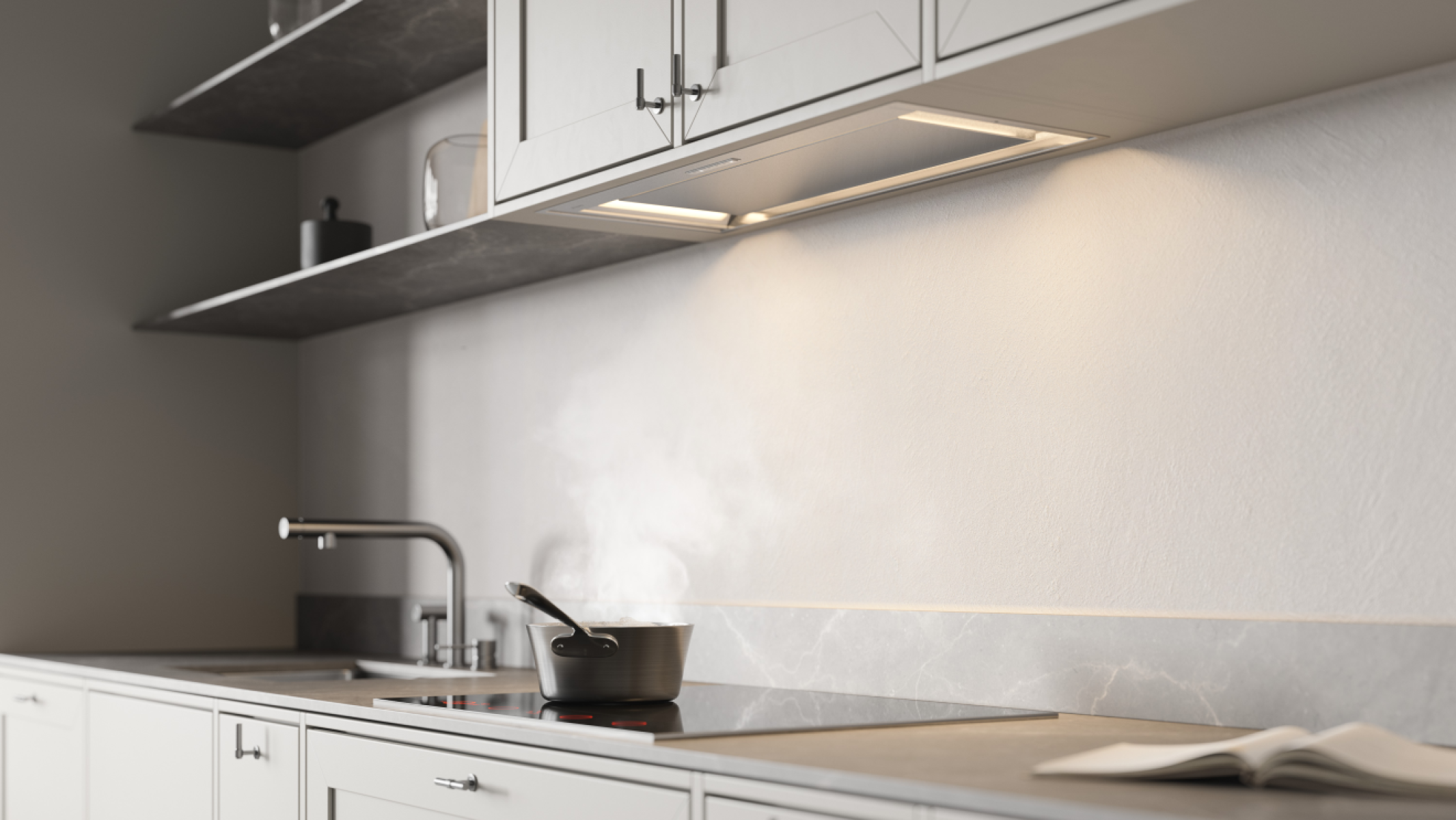 Освещение выполнено на основе светодиодных ламп мощностью 3,9 Вт, обеспечивая яркое и равномерное освещение рабочей зоны плиты. Такой тип подсветки отличается долгим сроком службы и низким энергопотреблением. Вытяжка оснащена индикатором загрязнения фильтра, который своевременно оповещает пользователя о необходимости очистки, поддерживая оптимальную производительность и продлевая срок службы оборудования. В комплект входят два фильтра, включая металлический жировой фильтр в кассете, предназначенный для мытья в посудомоечной машине, что существенно облегчает уход за техникой.