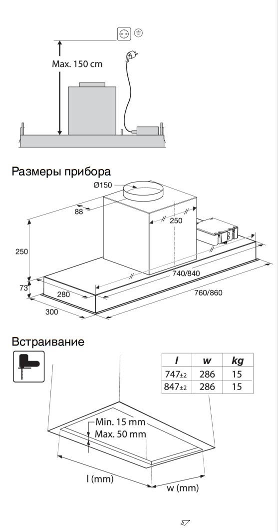 Прибор поддерживает два режима работы — отвод и циркуляция воздуха, что расширяет возможности ее использования в различных условиях. В режиме отвода загрязненный воздух выводится наружу через воздуховод диаметром 150 мм, а в режиме циркуляции происходит очистка и рециркуляция воздуха с помощью фильтров. В комплекте предусмотрено два фильтра, включая металлический жировой фильтр, выполненный в виде кассеты. Он легко снимается и предназначен для мойки в посудомоечной машине, что значительно упрощает уход за техникой и поддержание ее эффективности.
